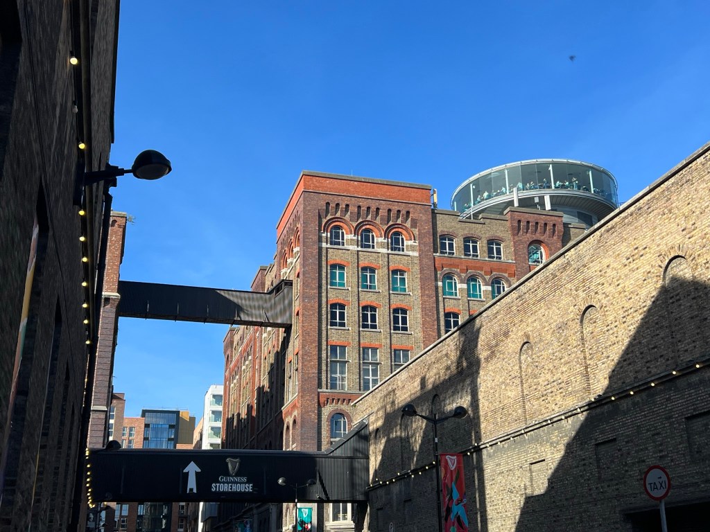 Frankly, I was a little disappointed with the Guinness tour. It’s just a self-guided walk up through the different floors of the building where they show how the beer is made, how it’s marketed and how to drink it (with a small sample) before you head to the rooftop bar (visible in the top right of the picture above) for a sample pint and views of Dublin.