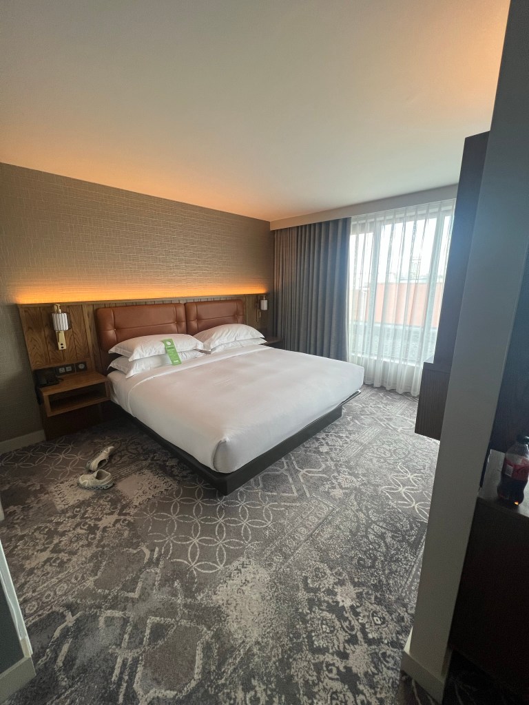 As I mentioned in the last segment, we arrived around 11:30, but our rooms were not ready yet. Around 2pm, the hotel called to let me know the rooms were ready so we headed back to the hotel to check-in. The kids were given a room on the 5th (top) floor and we were given a suite on the 4th floor. When we got to the suite, we were a bit underwhelmed. It was an accessible suite with all of the fixtures at wheelchair level. The bathroom had a zero entry shower that drained into the middle of the floor. The bed was much lower and everything was close to ground level. Of course, we understand that hotels have rooms and suites that cater to those who require special accommodations, but the front desk did not give us a heads up about this before we went to the room.
