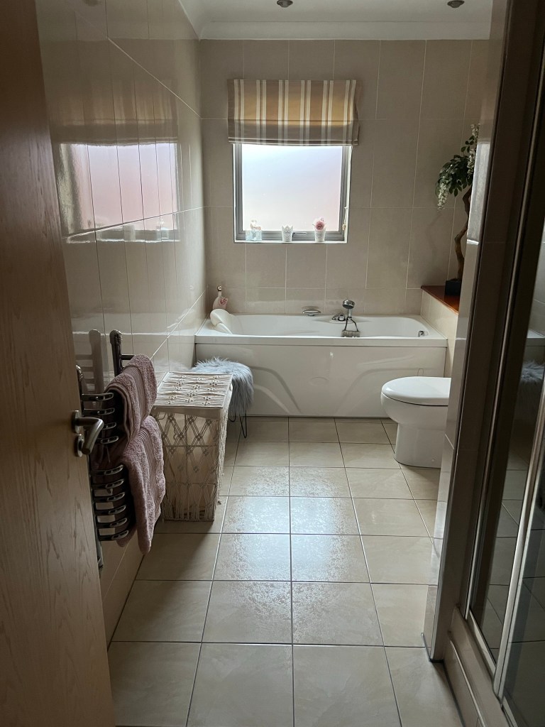 The bedrooms were huge and the master had the bathroom en suite. The other bathroom was in the hallway and also had a bathtub. Both bedrooms had balcony access.