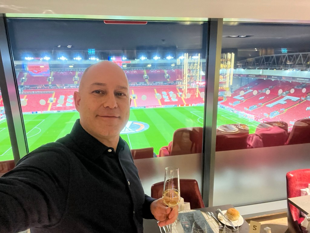 I was very fortunate that a friend I’ve made over my many trips to Liverpool through the years offered me the opportunity to use his seats in the Anfield Executive Lounge for a Europa League match. In the end, I was able to invite another friend from Atlanta to join me as he happened to be in town for the match.