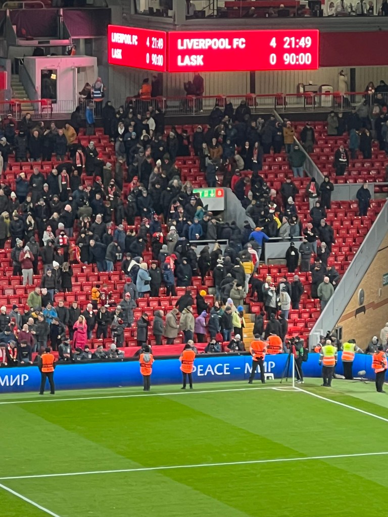 The match was a bit of a stroll as Liverpool won 4-0 vs. LASK, an Austrian club, who had brought several thousand very vocal fans to enjoy their first visit to Anfield.