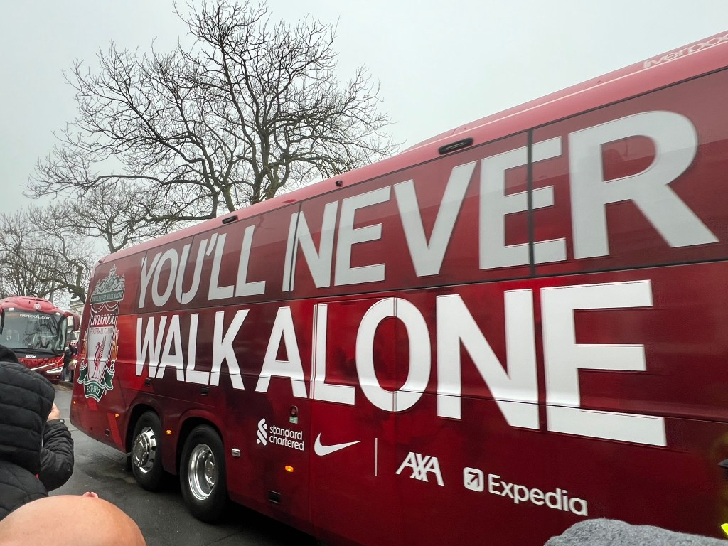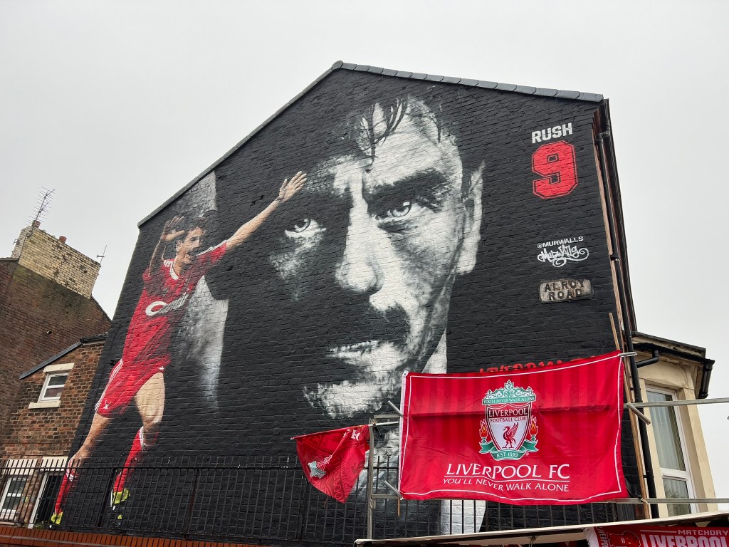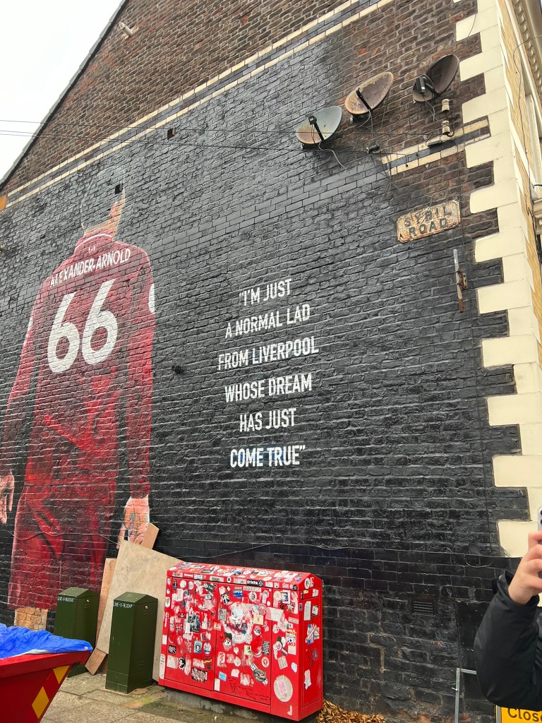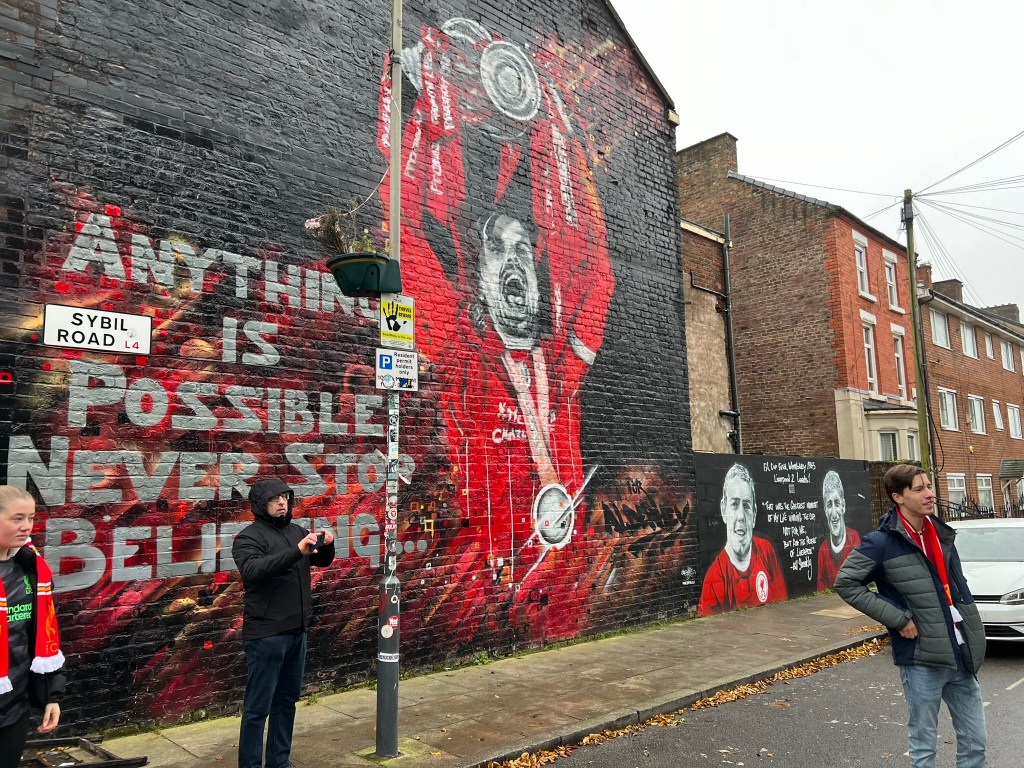 We walked over to Anfield Stadium about 90 minutes before kickoff so we could check out some of the murals on the way and visit the club shop before the match.