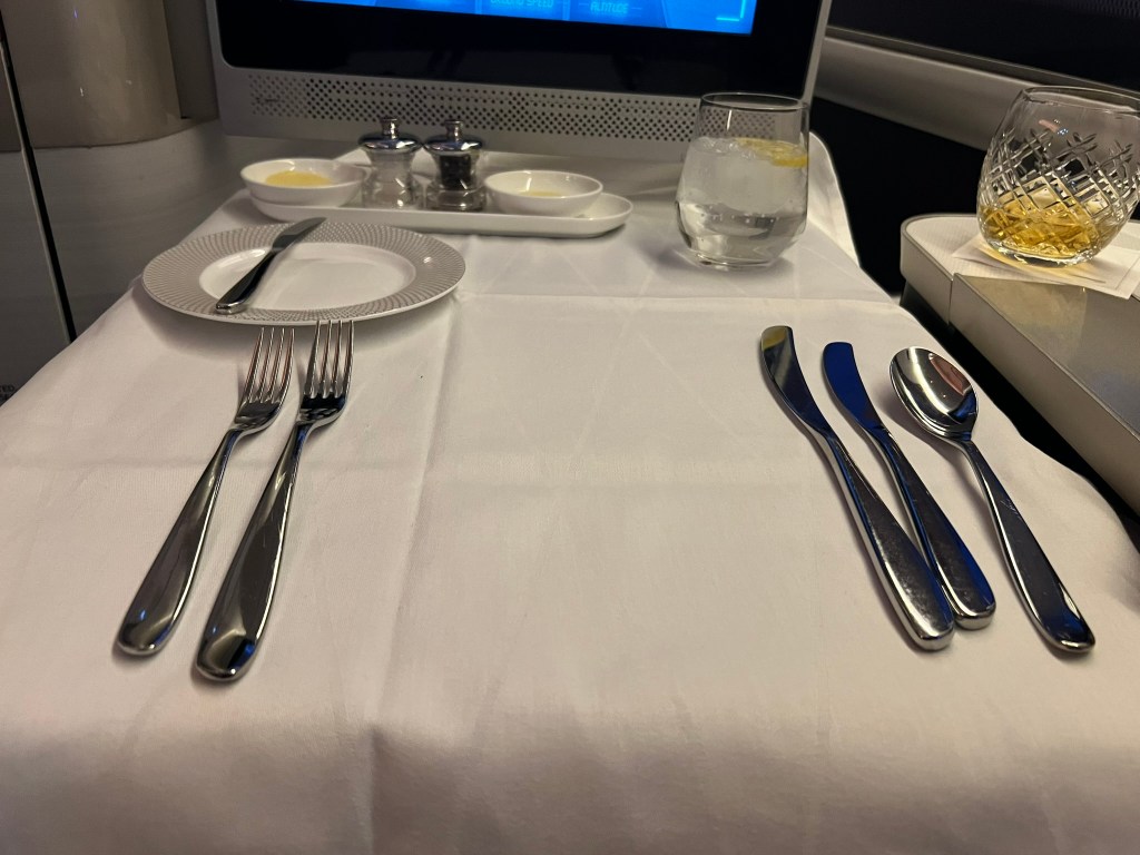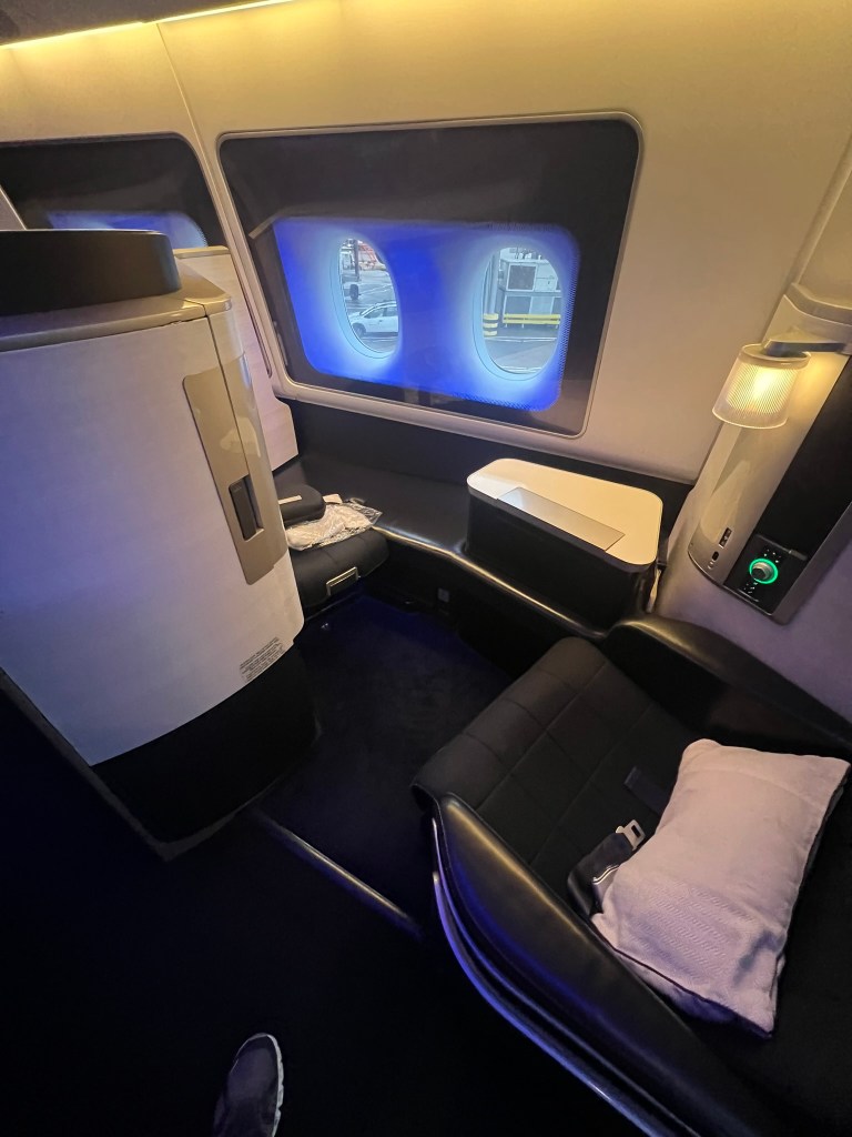 I’ve flown BA F a couple of times before and had a mixed experience in terms of service. On this flight, the service was excellent. The seat on the 777-200 is the older F seat without a door, but still provides a large amount of personal space and pretty good privacy.