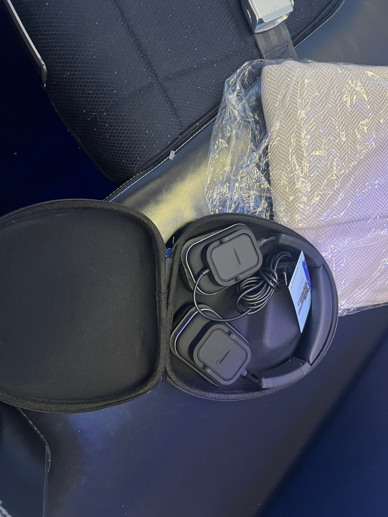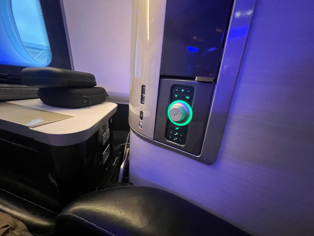 Headphones are provided (I didn’t need them). There are multiple USB ports and an AC outlet. The seat controls are easy to use, but there are no overhead air vents.