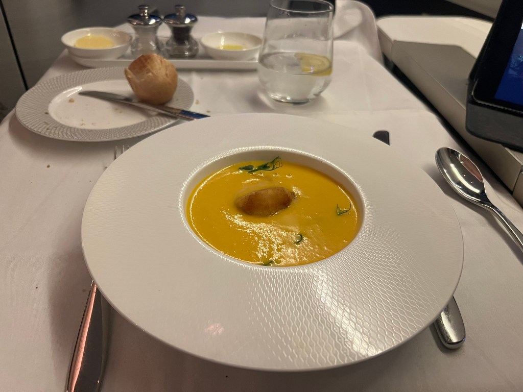 Next up was the soup. I love soup on a plane for some reason and this one did not disappoint.