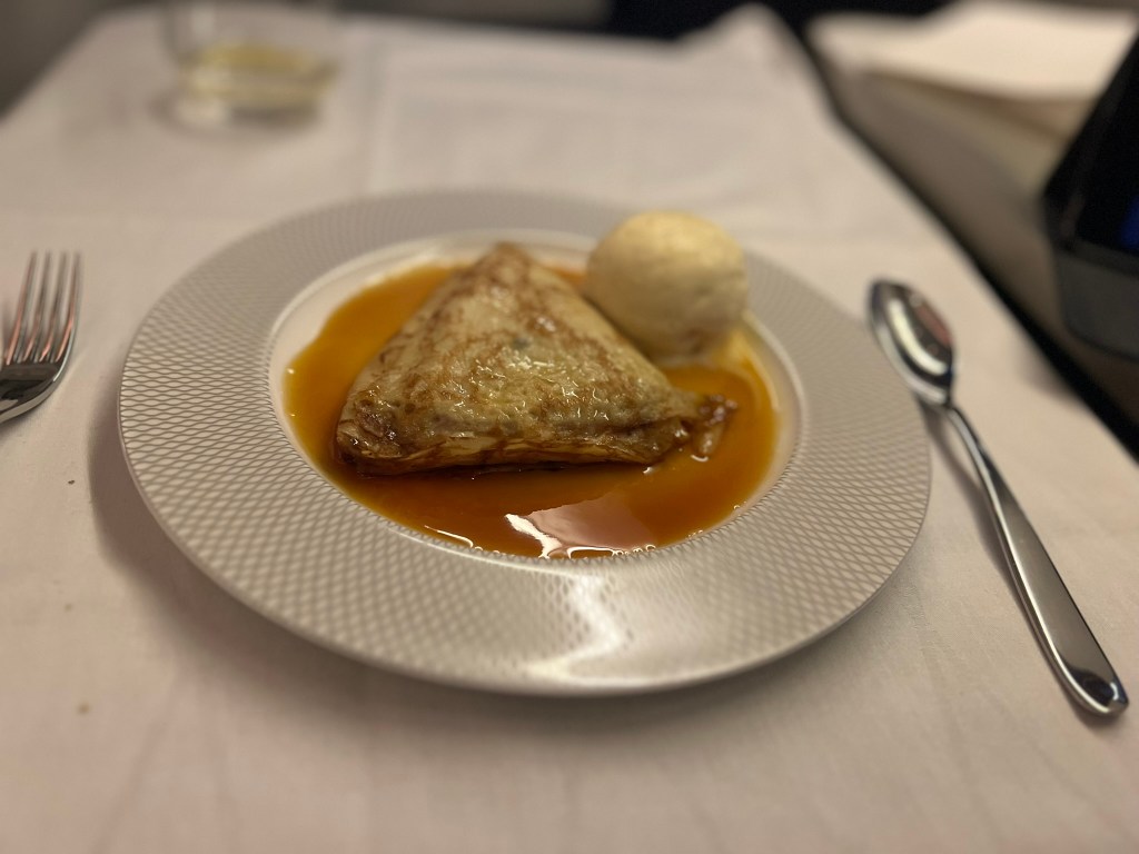 I decided on the crepes suzette for dessert as my mom used to make that when we were kids as a special treat. They were served with ice cream and were delicious.