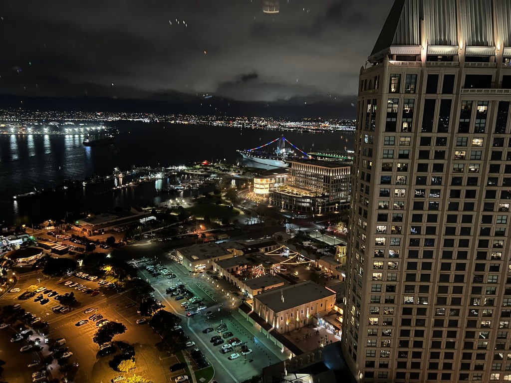 We actually had a view of the USS Midway and the harbor. There was a lot of glare during the day so I think this picture turned out better.
