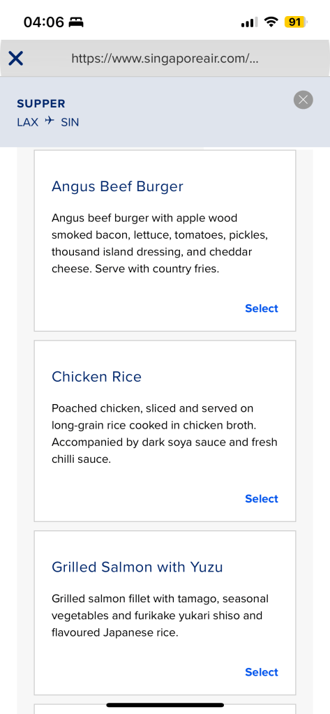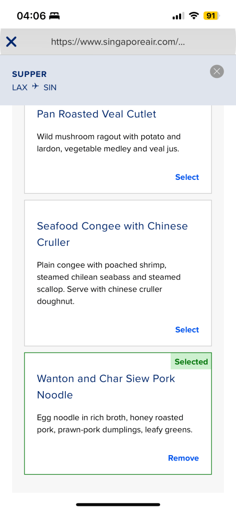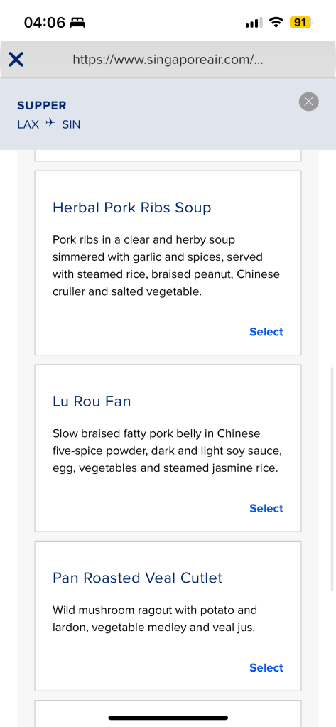 This flight was booked with 123500 Singapore miles per person. I transferred the points over from Citi. This was more points than our original round trip on ANA, but when you change dates, you take what you can get.