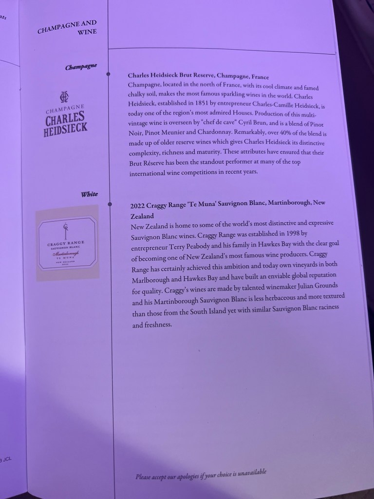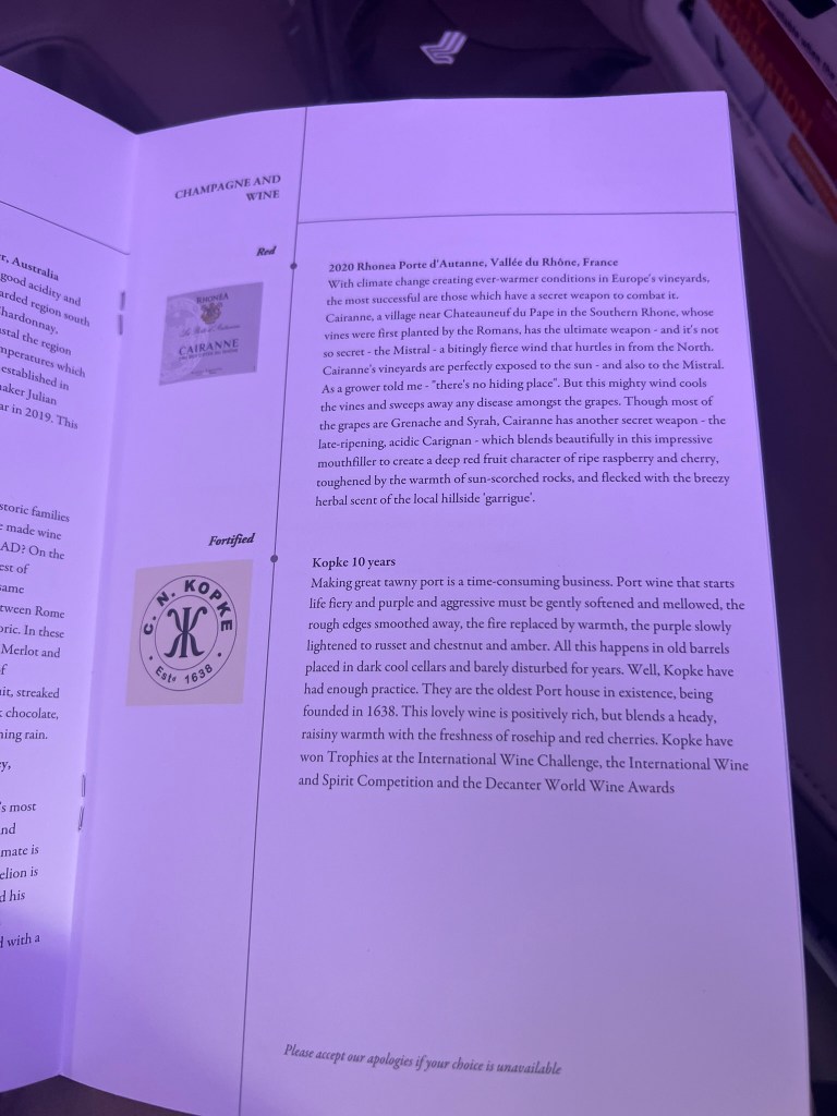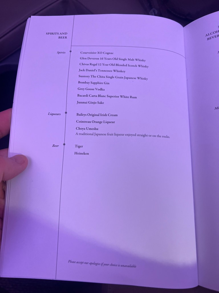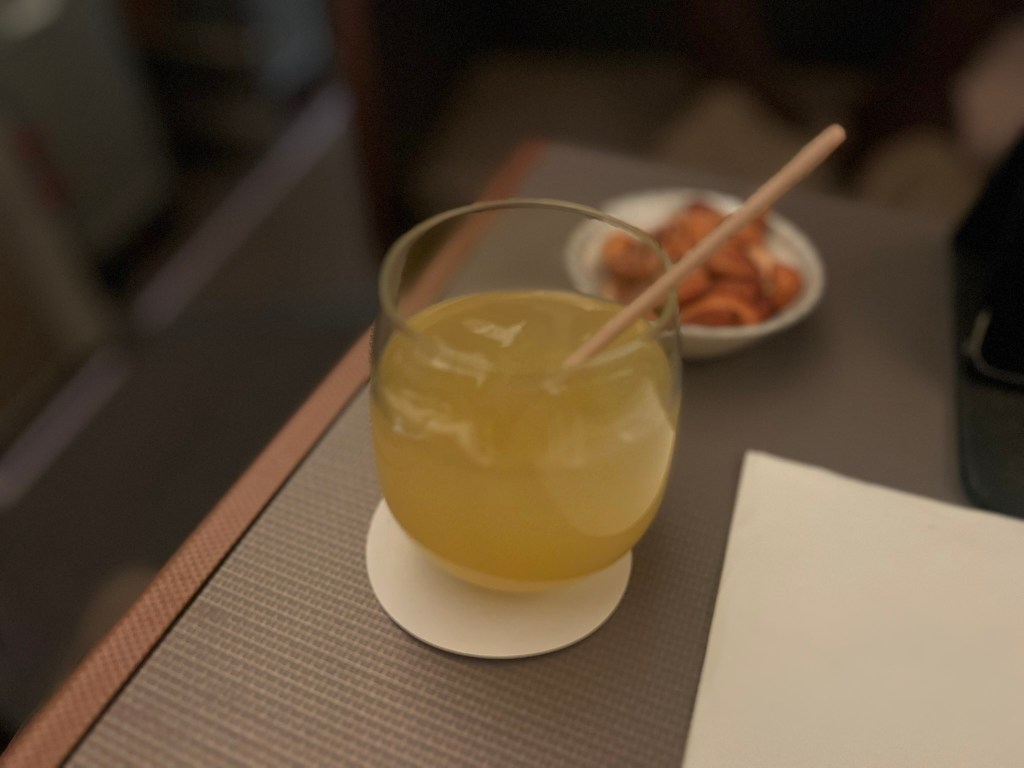 We were offered a pre-departure beverage of champagne or orange juice and the lovely flight attendants took our drink orders for after takeoff before we left the ground. I wish more airlines would do this in business class.