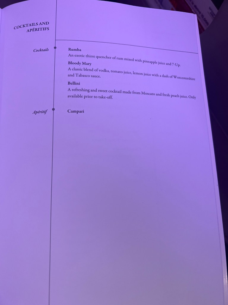 Here are the Book-the-Cook options we could choose from for each of the two main meals on the flight: