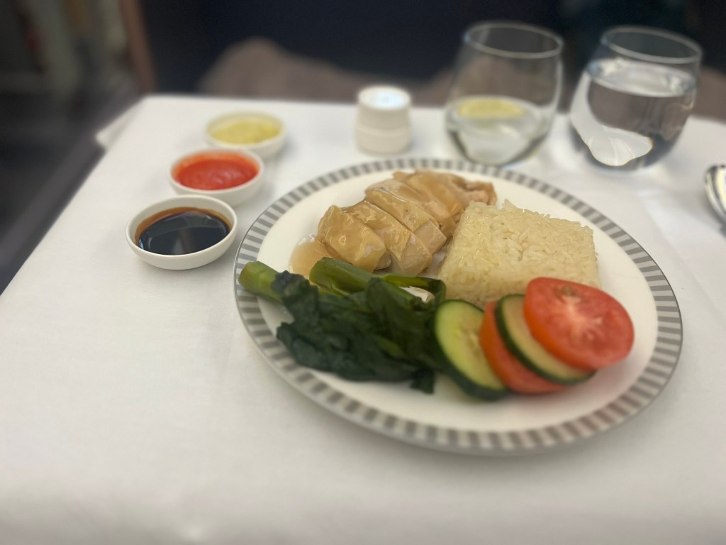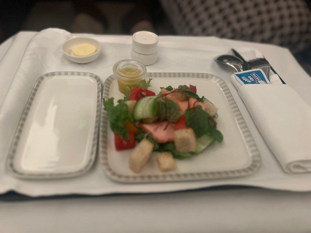 Around an hour after takeoff, the salmon appetizer was served. There was only one option. I think Singapore could do a bit better with a choice of appetizers.