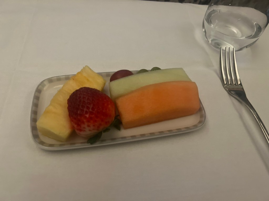 There’s a weird service flow on this flight as they serve dinner after takeoff around midnight (which was OK I guess as I was trying to stay up for a while) then a second main meal around 11 hours into the flight. I decided I would just have the second meal and try and sleep a bit more afterwards. I left the seat in bed mode and just sat up to eat which was pretty comfortable.