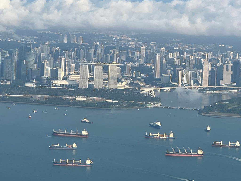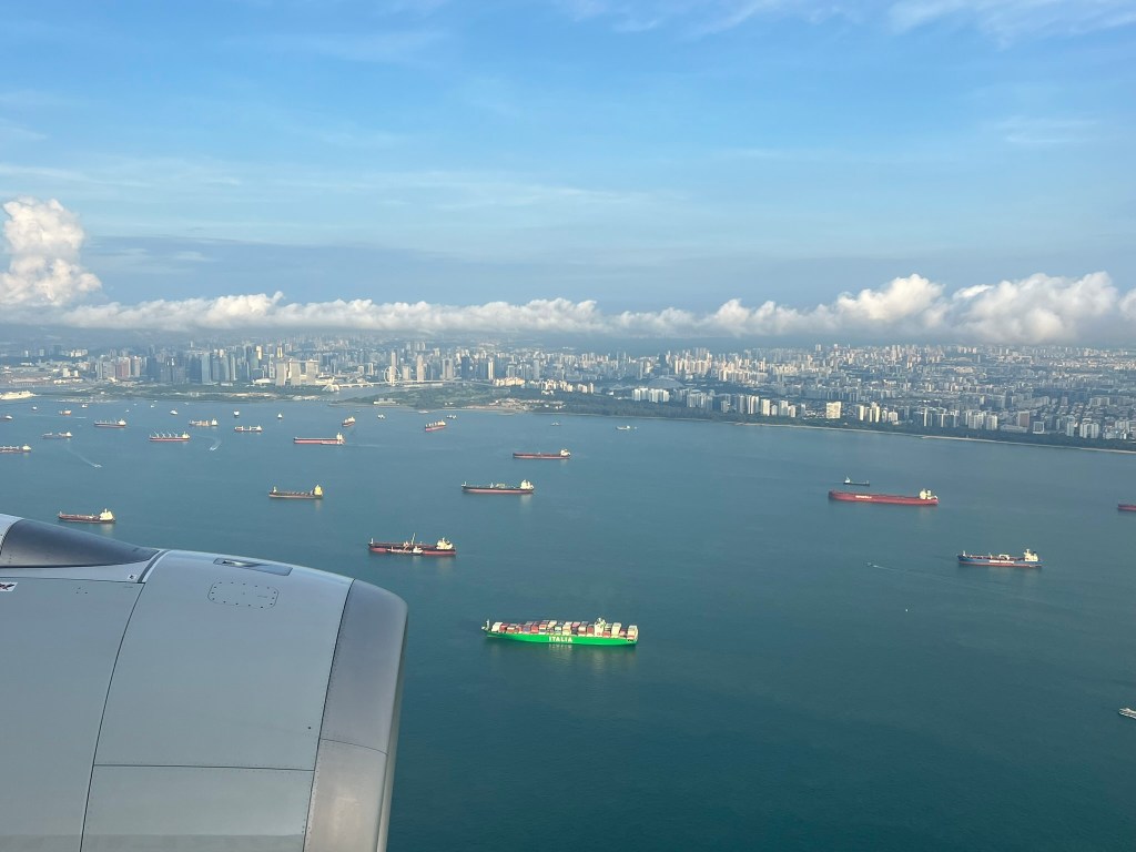To pass some time, I listened to podcasts and watched some Aussie rules football on one of four live TV channels we had available. As we approached Singapore, I moved over to the vacant window seat for landing and got some great pictures.