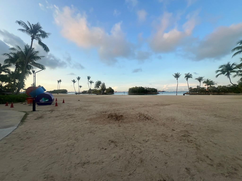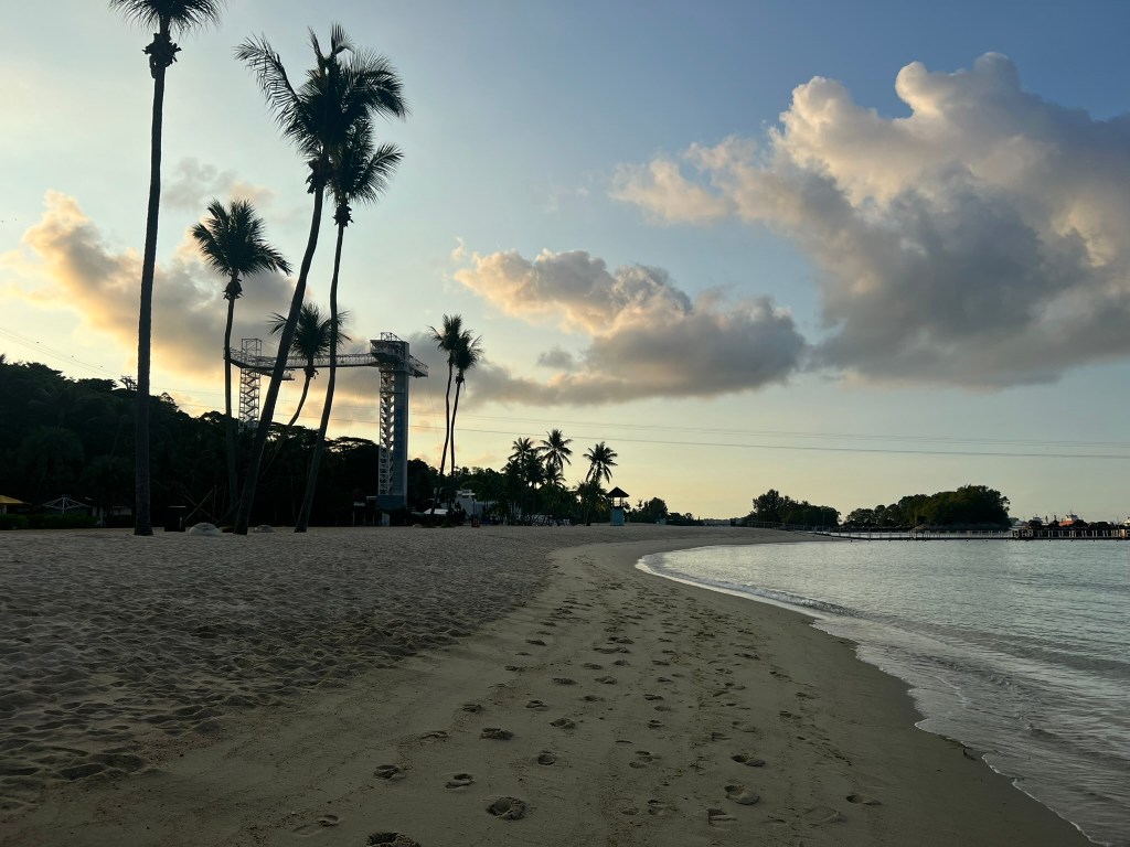 The next morning, we were up early after a pretty good night’s sleep considering the time change. We had breakfast at the Conrad right when the restaurant opened and took a Grab to Siloso Beach on Sentosa Island. My wife wanted to look for shells. I found the beach kind of “Disneyish,” but at that hour there was nobody around so it definitely was peaceful (and not too hot).