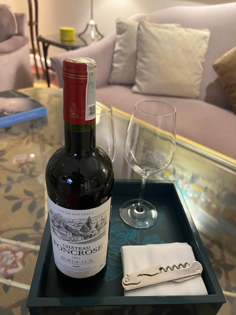 Just like at the Park Hyatt Siem Reap, you could see and feel the difference with the artwork, furniture and other decorating touches in the suite. We also received a bottle of wine (which we ended up not drinking) and some other snacks as a welcome gift.