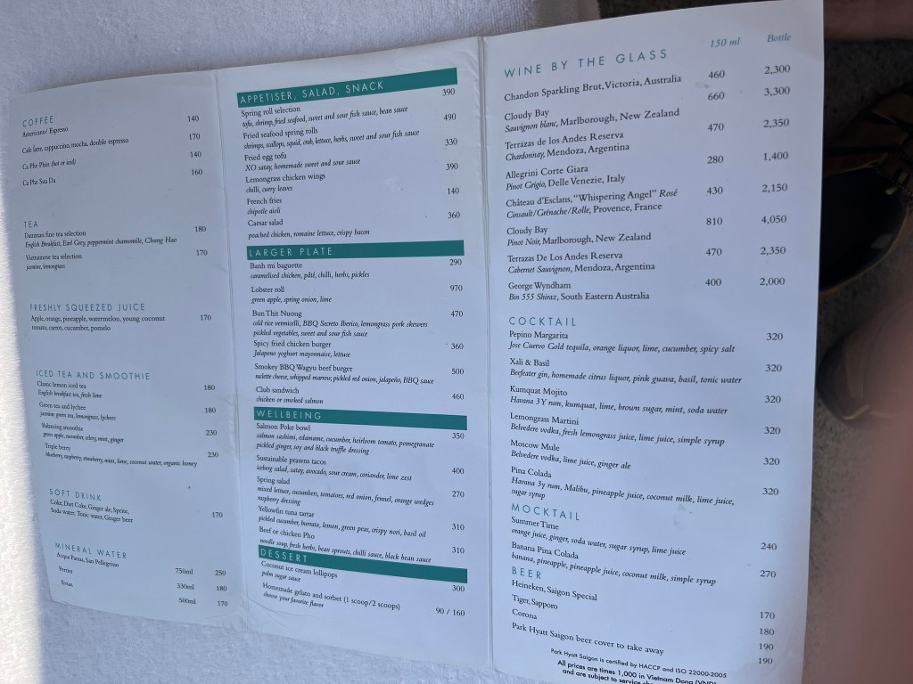 As I am a Globalist, we received a letter entitling us to two drinks at the hotel bar. We also were offered breakfast in the restaurant each morning. Breakfast was fantastic, if a bit busy. You could order things like pho, French toast and other dishes off the menu plus there was a huge buffet with just about every Asian and Western breakfast dish as well.