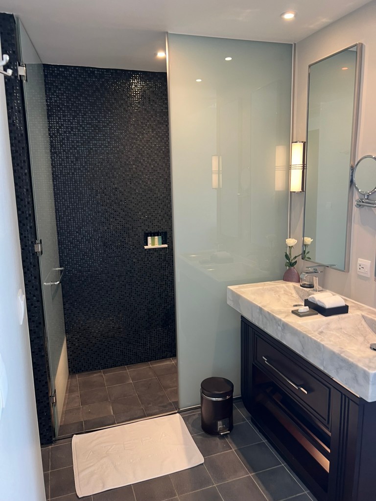 Our King room was nice and had a view of the hotel and the river beyond. I’m not sure if we were upgraded as I booked the most basic room on the Delta portal as it was just a one-night stay.