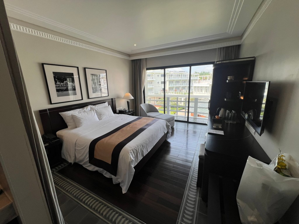We were driven to the Azerai La Residence Hue, a large boutique hotel right on the Perfume River across from the Imperial Citadel. Our room was ready. I had booked through the Delta Stays portal to take advantage of the new $100 hotel credit on my wife’s Delta Gold Amex card. That made the net price $76.