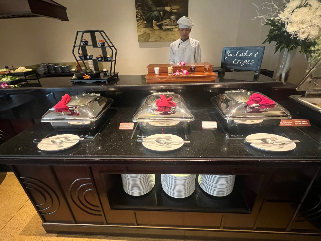 The next morning, I actually moved up our driver to Da Nang from 10am to 8:30am as we were ready to move on. First, we had an early breakfast at the hotel. It was a perfectly nice breakfast (no status needed to enjoy it as it’s included with the room price), but obviously anything feels a bit disappointing after the Park Hyatt Saigon.