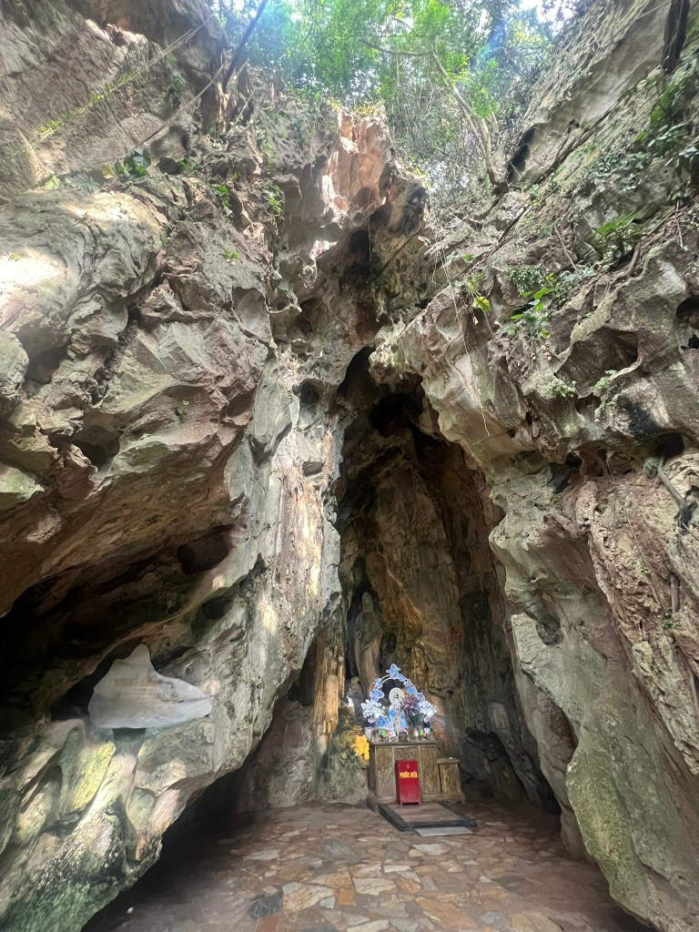 The next morning, I visited the Marble Mountains, which is about a 10 minute walk from the Hyatt Regency. It’s a complex of temples and shrines literally carved into the mountains across the road from the sea. You can take an elevator up to the first level (which I recommend due to the amount of stairs you will still have to climb) and then walk around through the various levels.