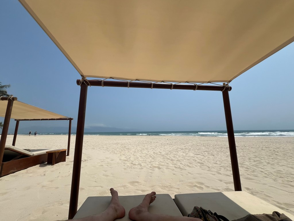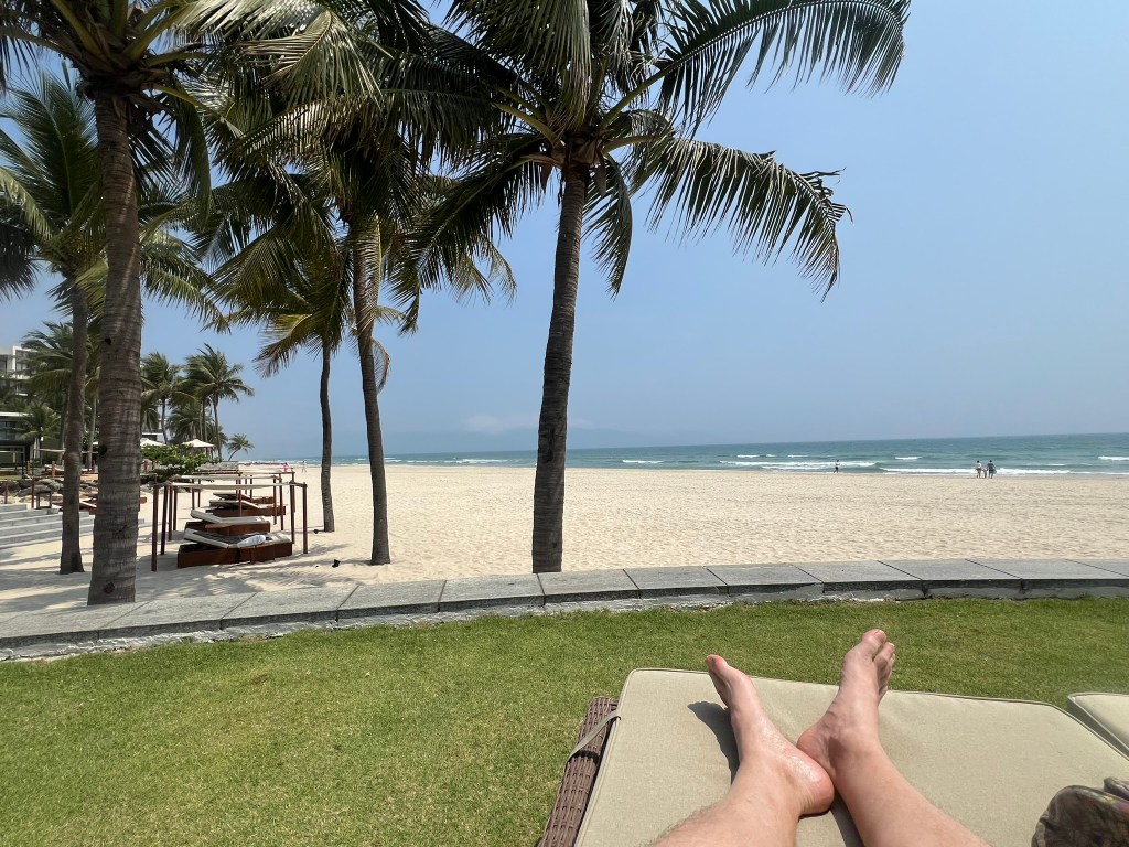 We spent some more time at the beach that morning after I returned from my hike to the Marble Mountains. There were always plenty of shaded loungers dotted around and even cabana beds on the beach, at no additional charge. We could get towels from the pool area and there were even servers that came around offering food and drinks from a menu.
