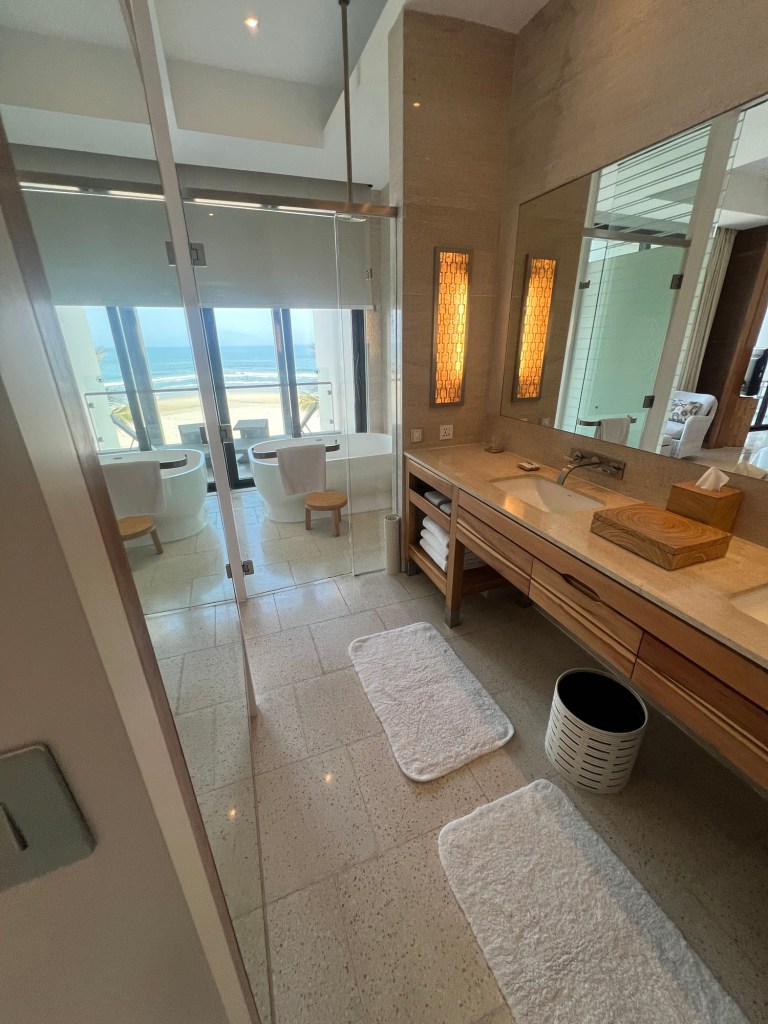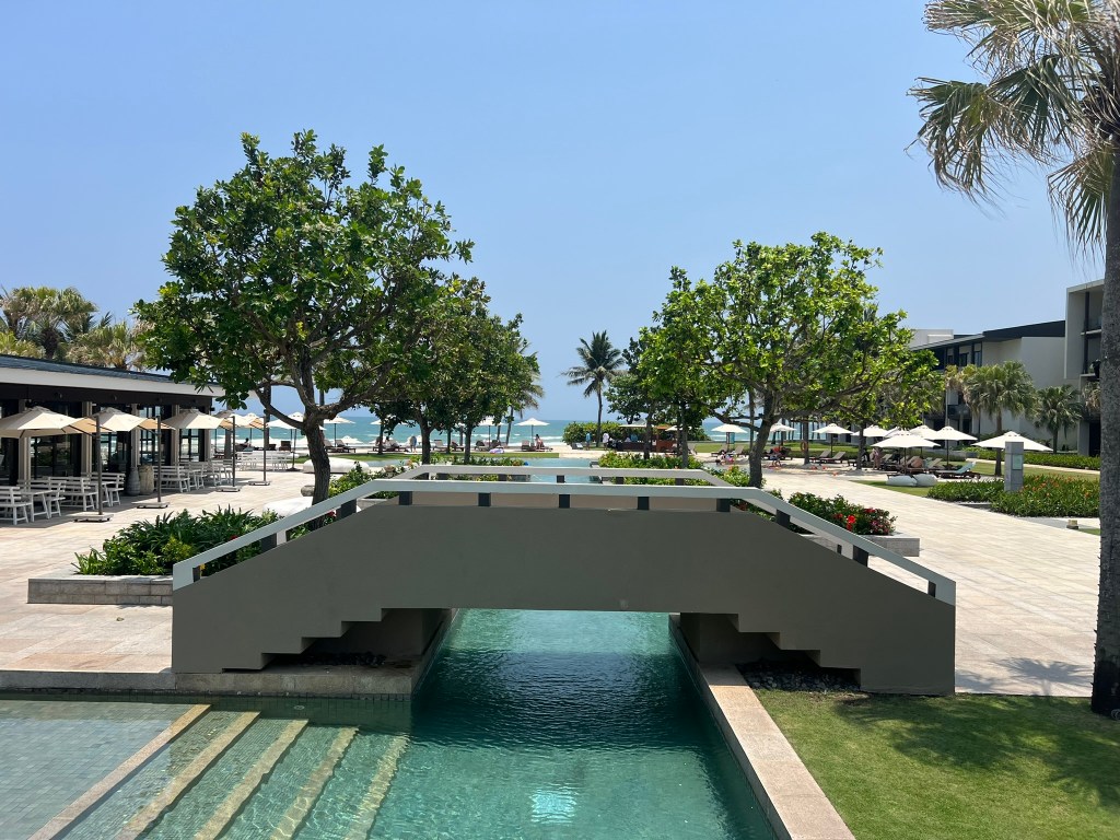 We arrived from Hue around 1pm and our suite was not yet ready. We were assured we had been given a further upgrade to an Oceanfront Regency Suite. Check-in for Globalists was handled in the lounge, which was a large space with indoor and outdoor seating in the middle of the property. We were told that as Globalists, we could choose breakfast in the lounge or at one of the restaurants on property. Even though the only restaurant that showed breakfast hours on the website was Osteria, the all-day dining restaurant near the lobby, we were told that the others, Pool House and Beach Club, also offered breakfast.