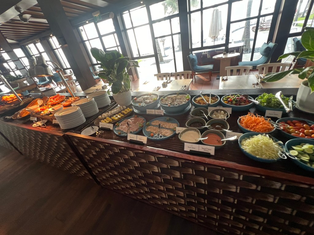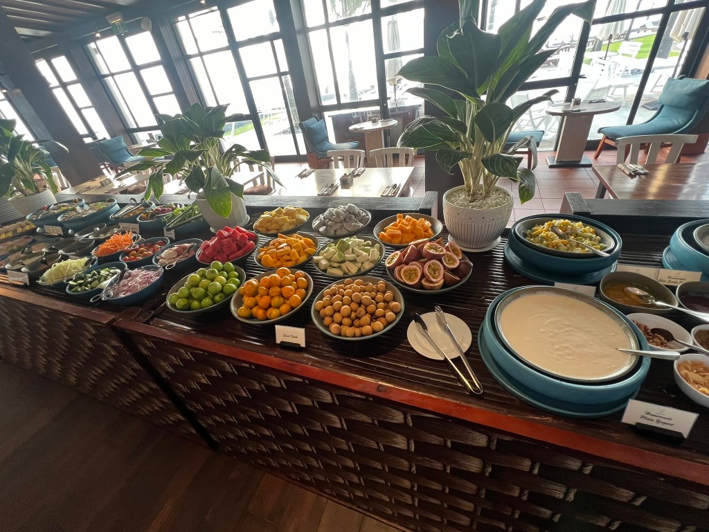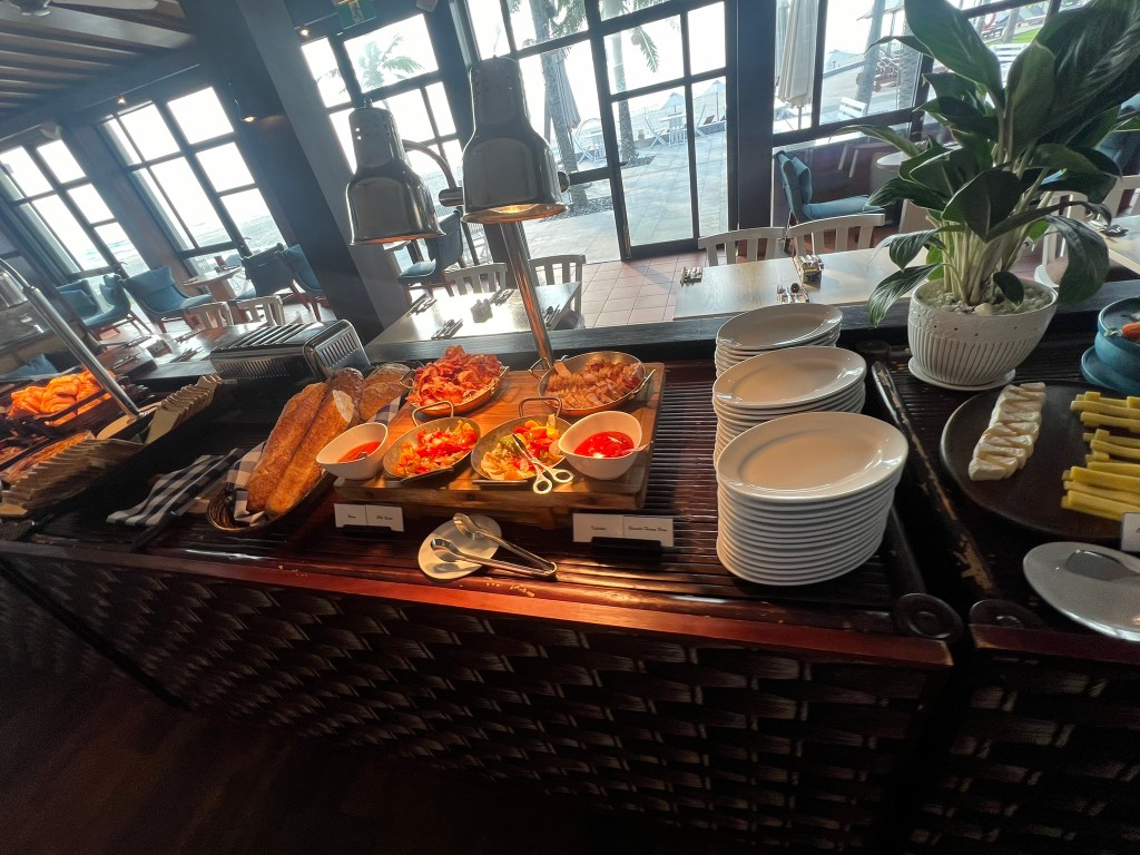 The next morning, my wife woke up super early so she went to the beach right at sunrise. We met for breakfast around 6:30. We went to the main restaurant and the breakfast was fine – nothing special. It was a large buffet, but the quality wasn’t quite on par with the Park Hyatts or even the Hyatt Regency Phnom Penh.