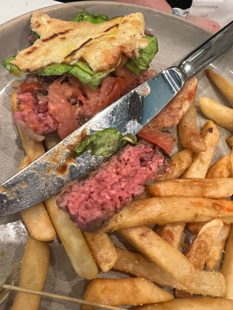Unfortunately, lunch wasn’t very good. I ordered a Cobb salad which was fine, but my wife’s burger, which she ordered medium-rare, came out almost raw. They took the burger off the bill, which is good service, but of course that was going to leave me short of the $800. I just upped the tip to get me exactly there.