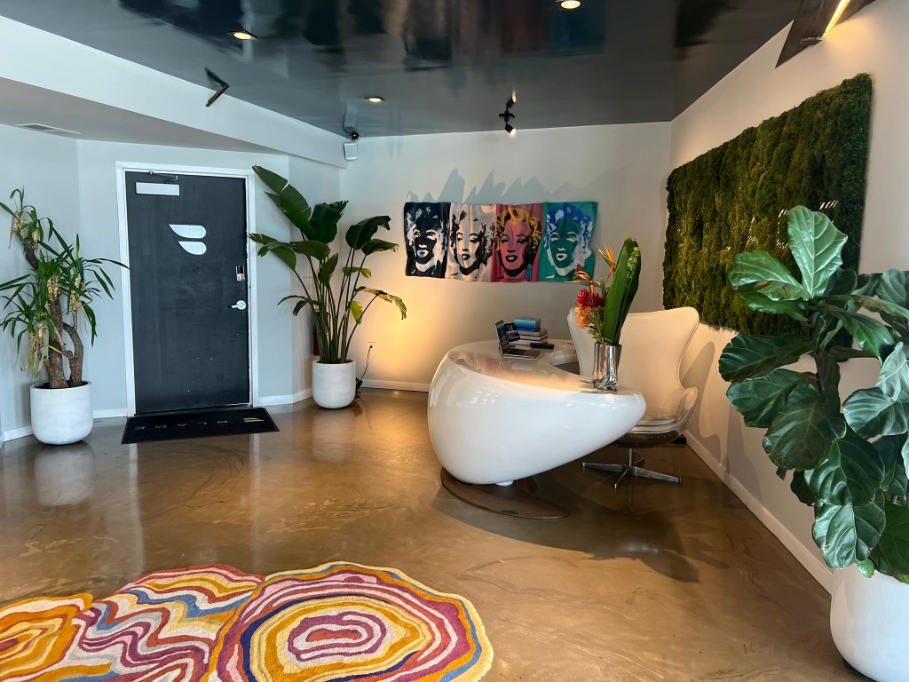 Inside there was a much better experience. There was a check-in desk where we showed our IDs and received “boarding passes” which were actually very cool logoed snap on bracelets that we could keep after the ride. There was a nice bar and a few seating areas.