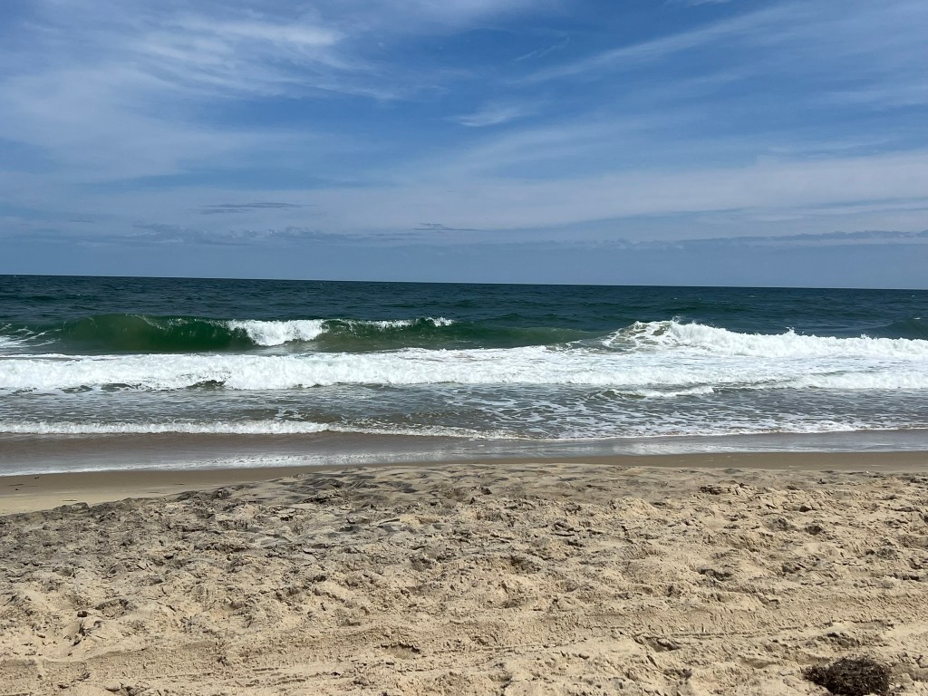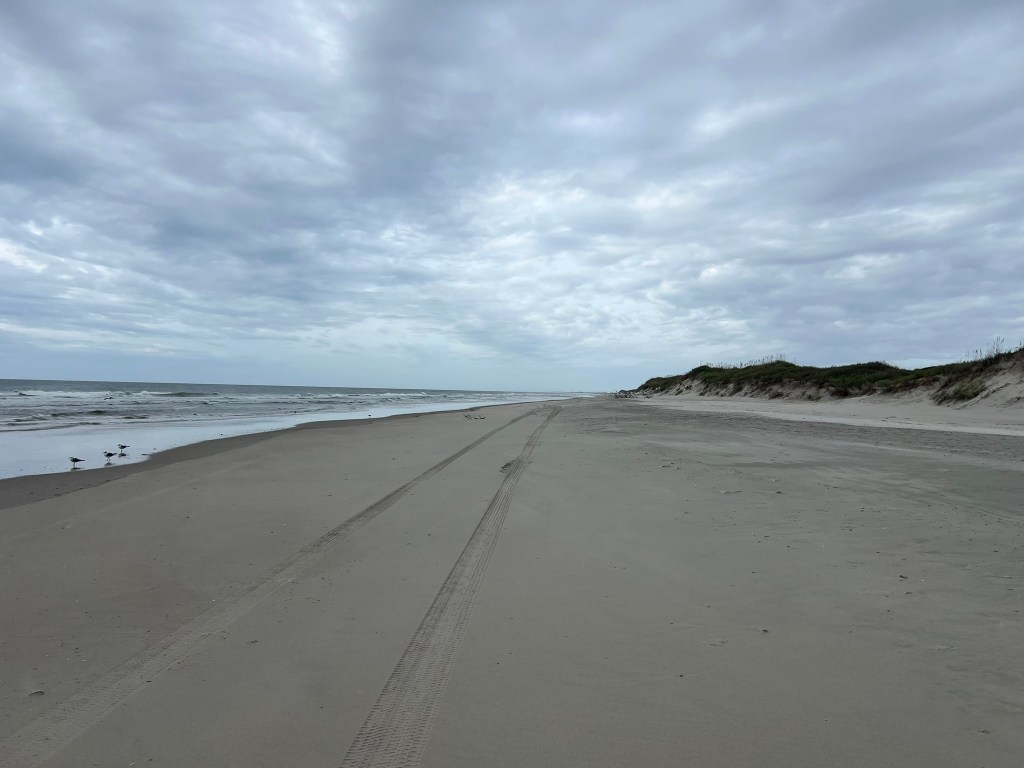 Once we got to Ocracoke, we drove on one of the off-road paths right to the beach on the northern side of the island. We were the only ones there for a couple of hours. I drove down to the village and back for coffee and pastries when I got a bit bored and stir crazy.