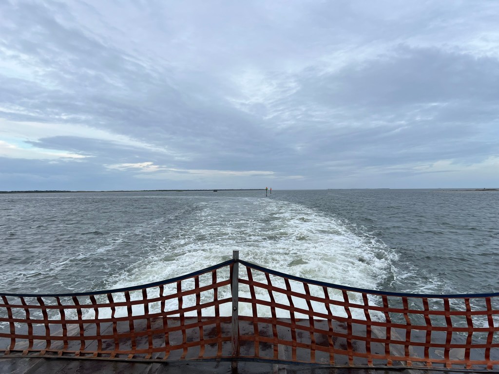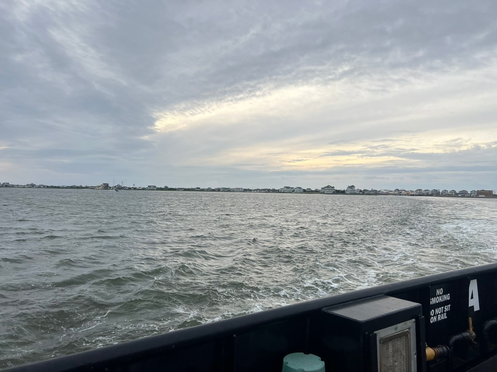 The trip to Ocracoke on Saturday was pretty long. We started at 5:15am and drove to the ferry terminal on Hatteras, arriving around 6:45am for the 7am ferry to Ocracoke. I was pleasantly surprised that the ferry was free as it’s basically just an extension of the highway. Despite the actual distance being just a few miles, the ferry takes over an hour as it has to maneuver around some sand banks and go way out into the sound and then loop back to Ocracoke.