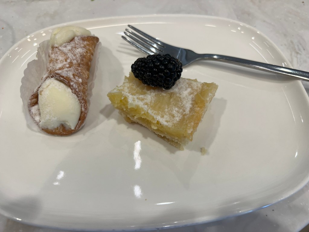 The food selection was excellent, including local selections like Boston Clam Chowder, several hot meat and veggie options, charcuterie, salad, and some pretty good desserts.