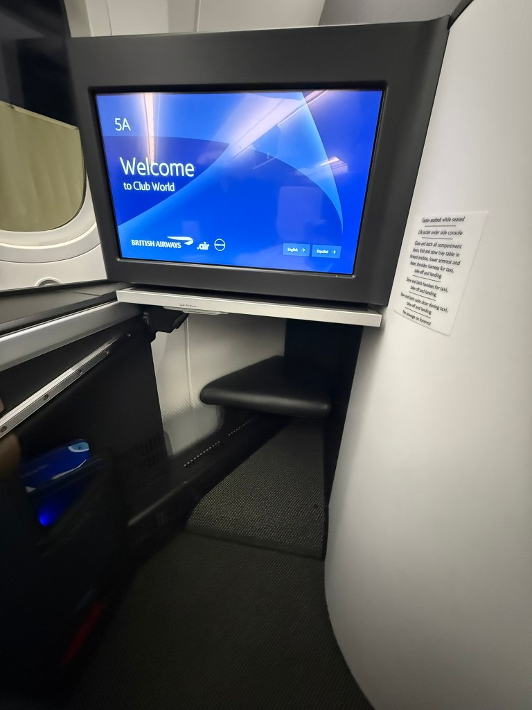 Here are some pictures of the seat and features. I know this seat fairly well as it’s almost identical to the AA 777 business class seat and between AA and BA, I’ve sat in it many times. The only real difference is the door.