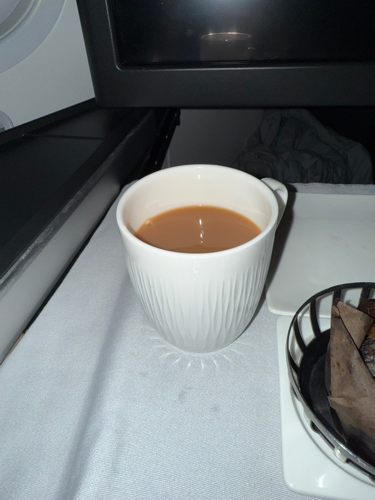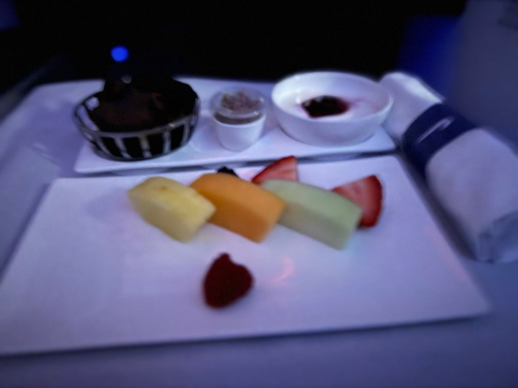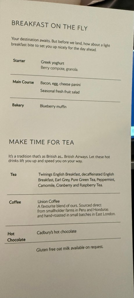 Around 5am UK time, they turned the lights up slowly and brought round breakfast for those who wanted it. As I was awake, I just had the continental portion and not the breakfast sandwich option.