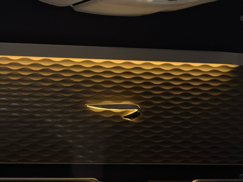 I boarded around 7pm for the 7:45pm departure and I had purposely selected seat 5A in the business class mini-cabin on this 787-10 aircraft which is rows 5-7. First Class was in rows 1-2 immediately ahead of the bulkhead in front of my seat. First Class passengers have their own restroom in the front and there’s a galley up there as well so there’s very little foot traffic in the mini-cabin. The rest of business class is behind Door 2L after row 7. That’s also where the business class restrooms are located.