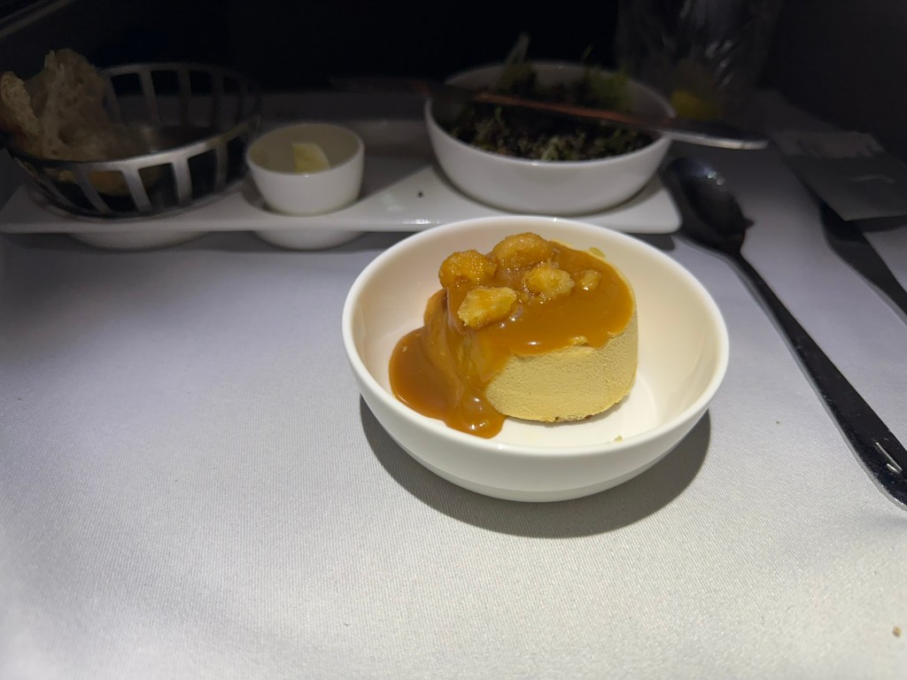 Dessert was served about 10 minutes after I got my main course as I got the attention of the flight attendant that I had finished with the dish. I ordered the toffee tart which was delicious.