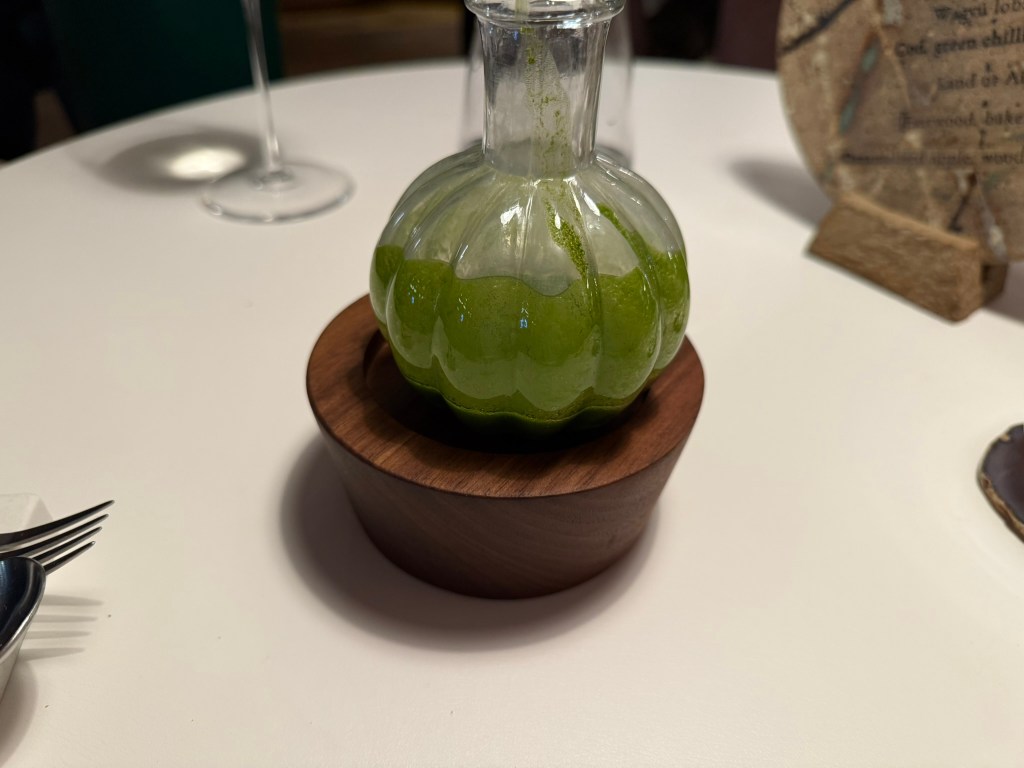 It’s a Michelin-starred place that also has a speakeasy downstairs where you can get interesting cocktails. The cocktail menu was also available in the restaurant along with a huge wine and champagne list.