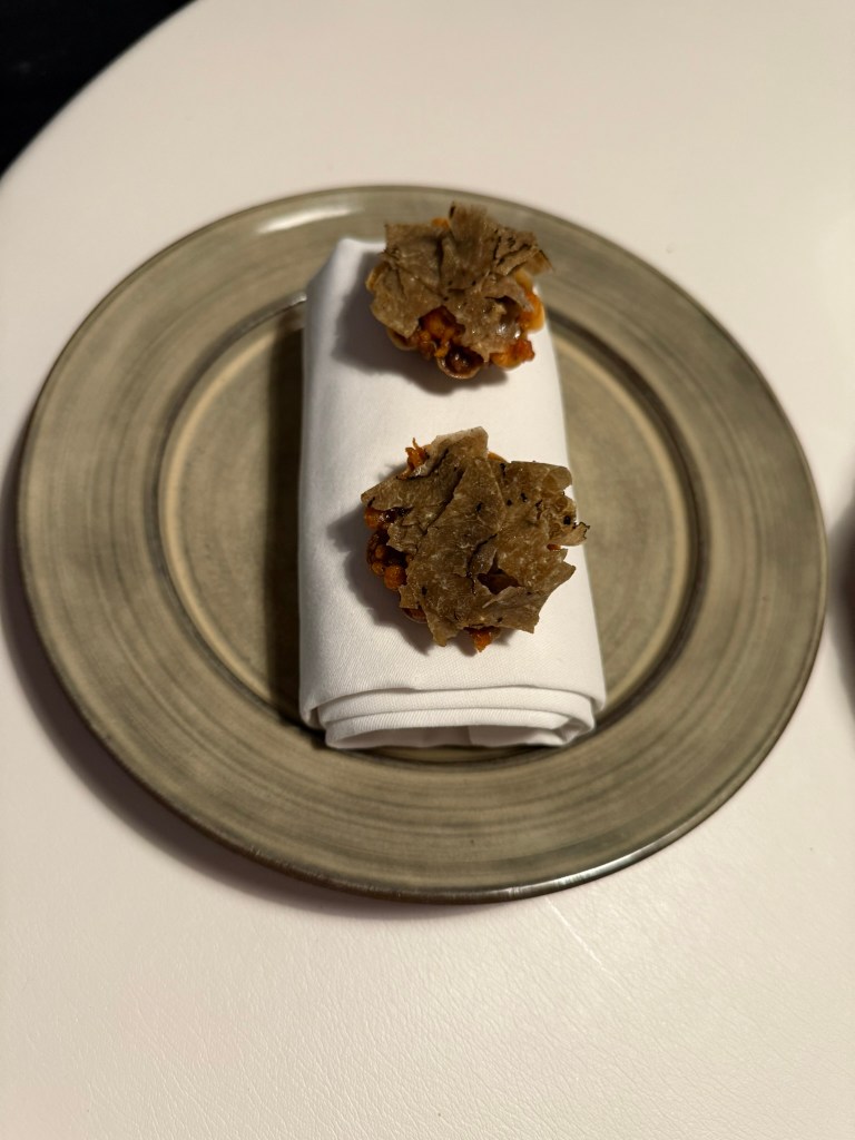 We walked over a bit early but they were able to seat us. I don’t want to spoil too much about the experience as there were some surprises along the way. I’ll just post the food pics so you have some idea of the number of courses.