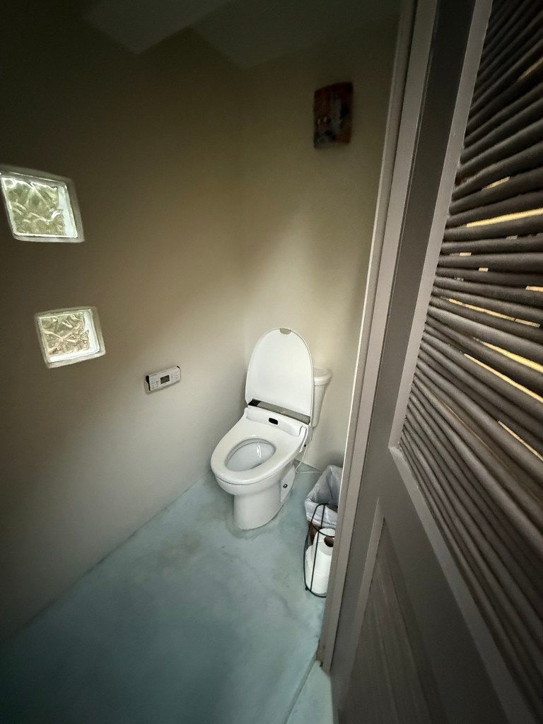 The bathroom and toilet were just beyond this area in separate rooms accessed from the courtyard. There was a Japanese-style toilet which was a nice touch.