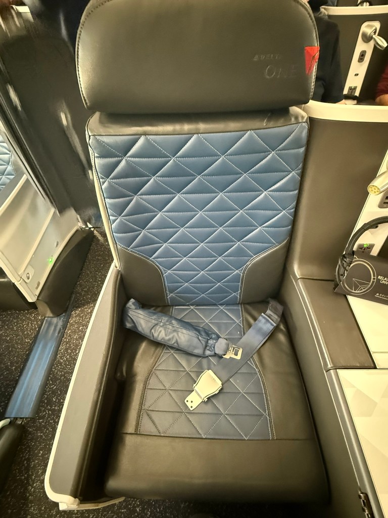 These are old seats with new covers. The planes have been refreshed with Premium Select (Delta’s premium economy) and frankly, those seats are more comfortable to sit in and have bigger IFE screens, but they obviously don’t lay flat. The Delta One seats are narrow and still have the same bones as when they were delivered over 20 years ago.