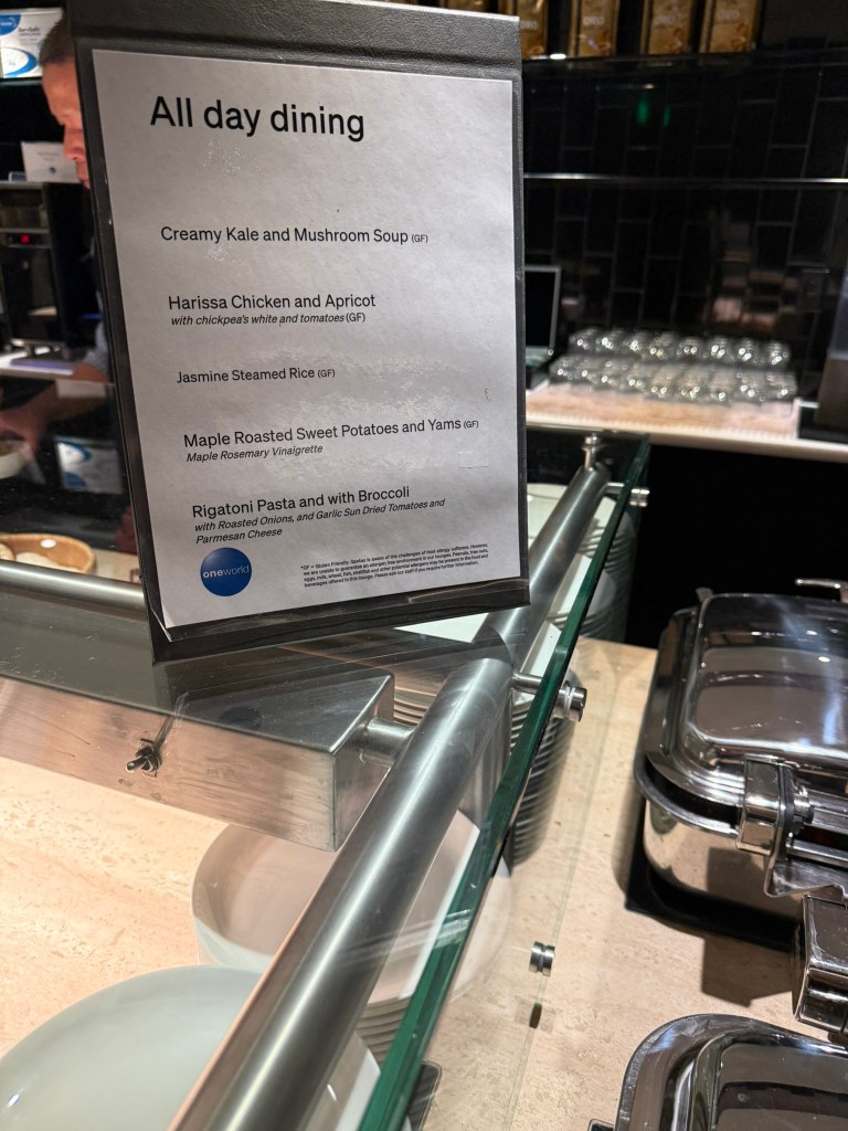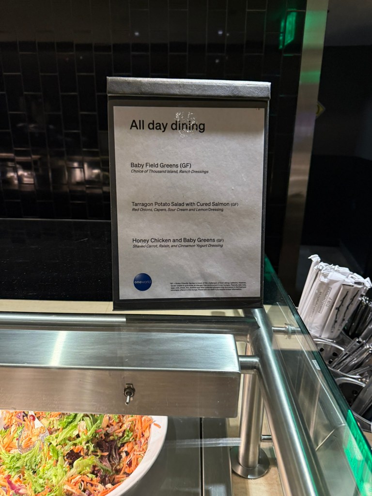 We still had almost three hours until our flight took off and about two hours until boarding when the Qantas lounge closed for the evening. We moved over to the OneWorld Business Lounge just around the corner. This lounge is open to business class passengers on OneWorld airlines (AA, BA, JAL, Qantas, Qatar, Cathay, Iberia, etc.) although I expect anyone flying AA from Terminal 4 would visit the AA Flagship Lounge instead.