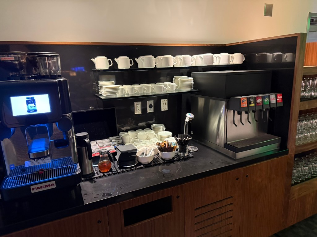 The bar was staffed and had decent drink options available. There were also drink stations with self-serve coffee/tea and soft drinks.