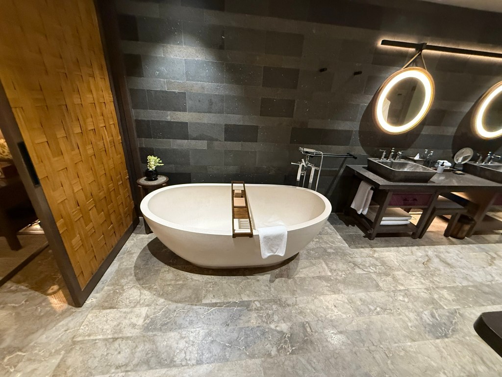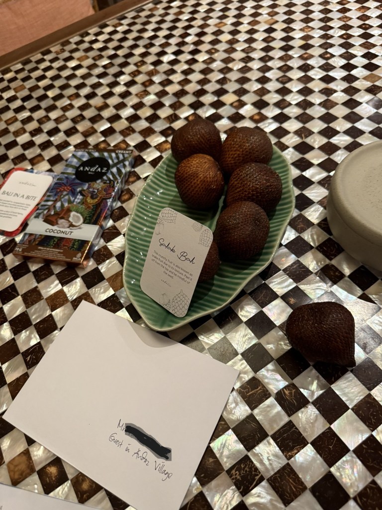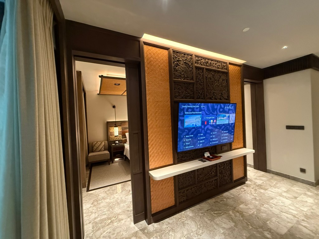 We were fortunate that the Andaz was available for off-peak booking at 17k Hyatt points per night. I applied a Suite Upgrade Award and the booking immediately showed we had been placed into an Andaz Suite. The day before we arrived, I noticed the app showed us in an Andaz Deluxe Suite, which is a bit larger. Then, as we landed in Bali and I checked the app again, I saw we had been upgraded again to a Lagoon Suite. These are the same size as the Deluxe Suites, but also open onto a semi-private lagoon.