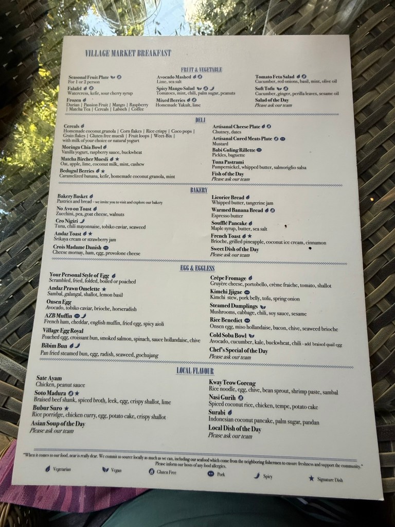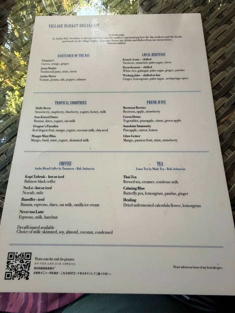 On the second night, we ate at the Indonesian restaurant in the courtyard and it was much better. I really enjoyed my curry. The last two nights, we left the property and ate at Naughty Nuri’s, a famous local barbecue ribs place a short Grab ride away and then a sushi restaurant within walking distance.