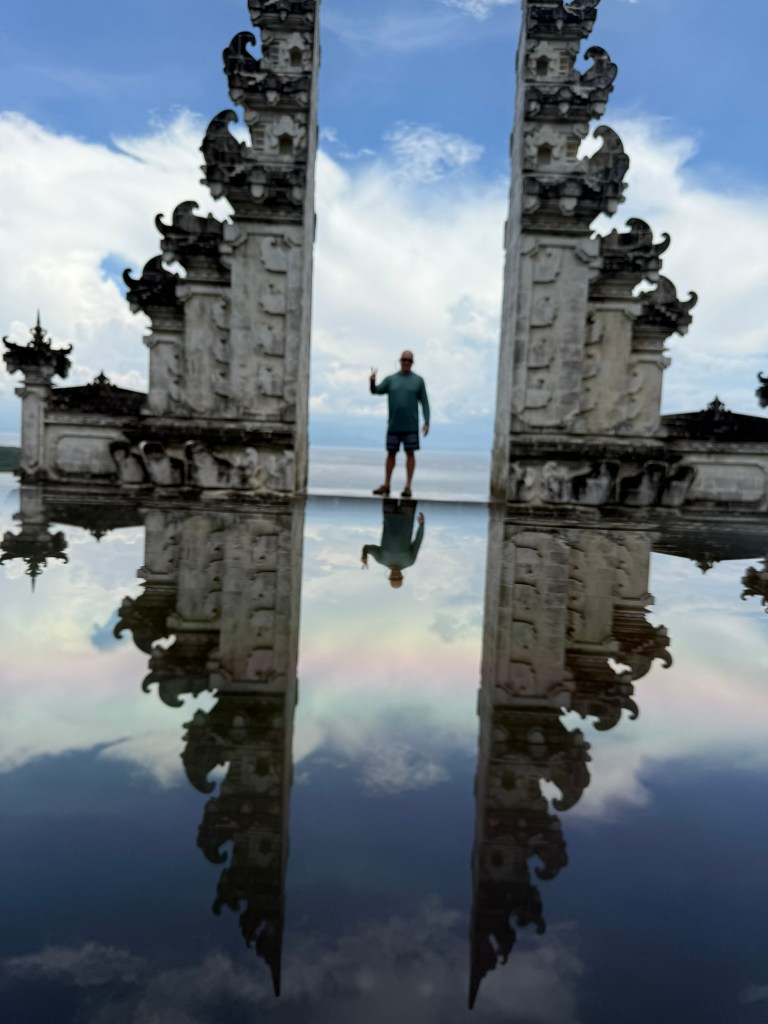 I got the tour guide to take a picture of me with the gates and he used a trick with another phone to get the mirror effect.