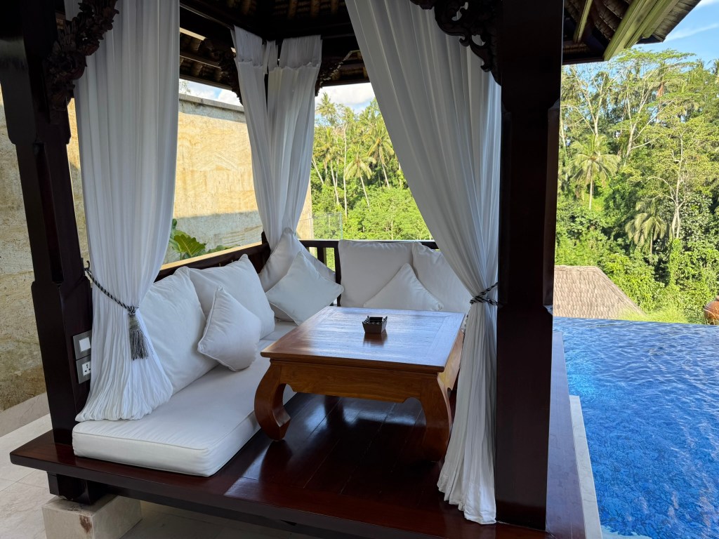 The room stayed nice and cool. We definitely got some use of the pool and lounging area after we had finished with our daily sweltering Ubud activities.