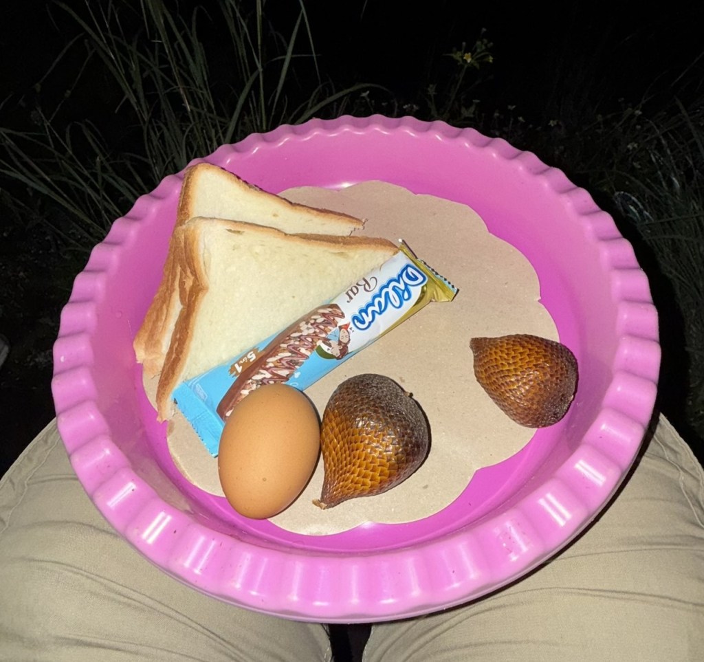 After we passed the jeep parking spot, it got narrow and more rocky. We had to scramble up a few steep sections and the tour guide was quick to offer a hand if I needed it. After about an hour, we made it up to the viewing platform near the summit. We sat and watched the sunrise while our guide brought us a simple breakfast of an egg, granola bar, banana sandwich and local fruit.