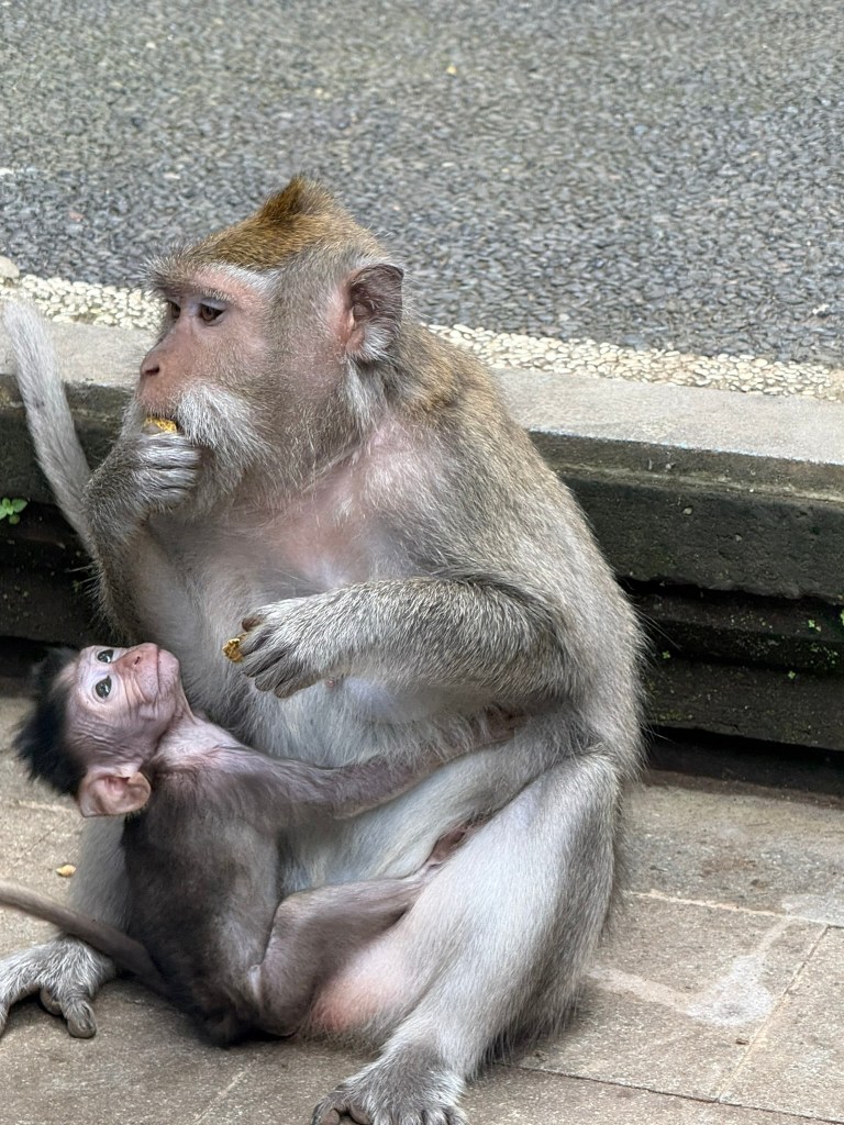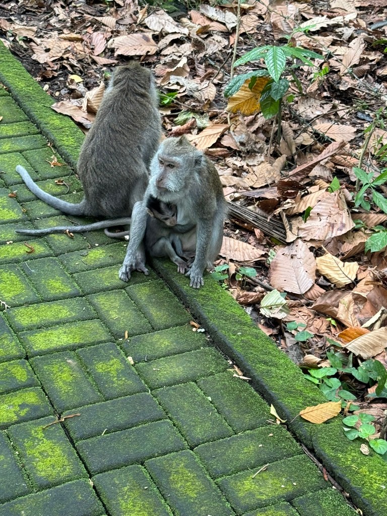 After we paid our admission fee, we walked through the main entrance and saw lots of monkeys. The admission cost included a bag of food. There were far fewer tourists there than at the main monkey forest close to Ubud.