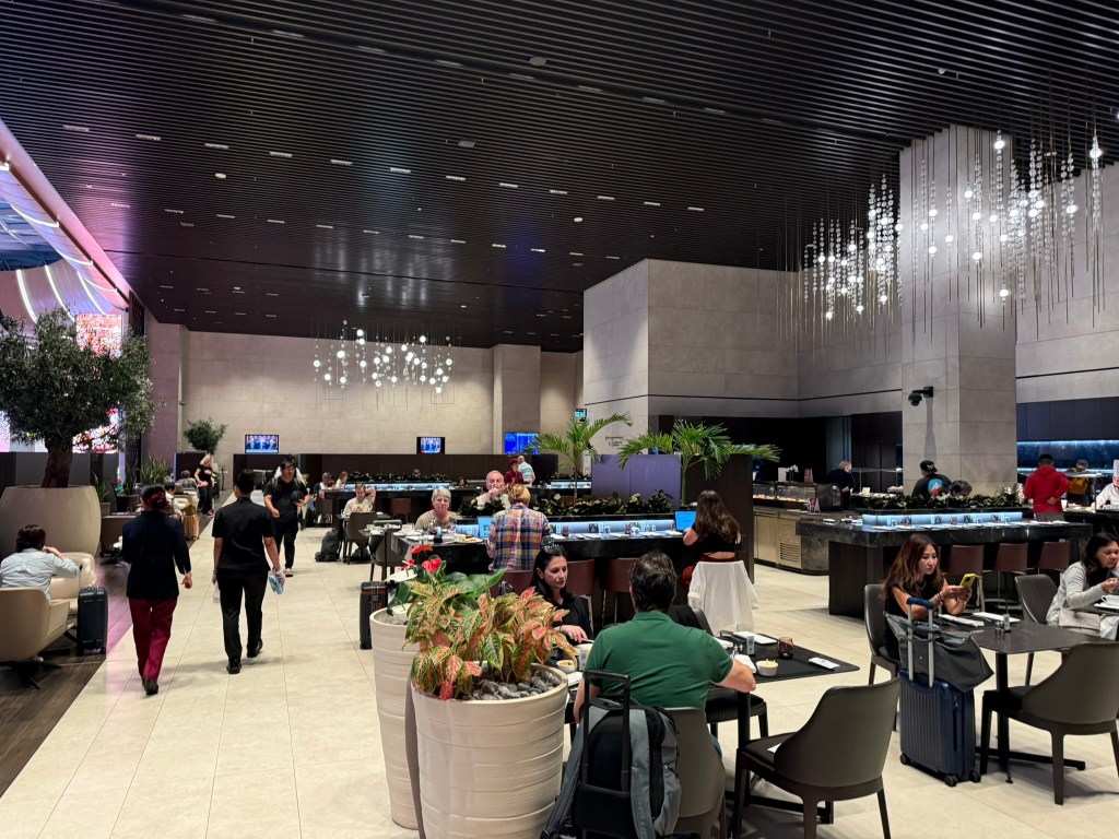 After breakfast, we grabbed a seat for a few minutes before we headed out. I was pleased to see that unlike the other lounge, you could eat and drink at your seat. There were two sides of the lounge. One had the restaurant combined with seating areas and the other was just more seating areas. It was huge, but still a bit smaller than the other Al Mourjan lounge.