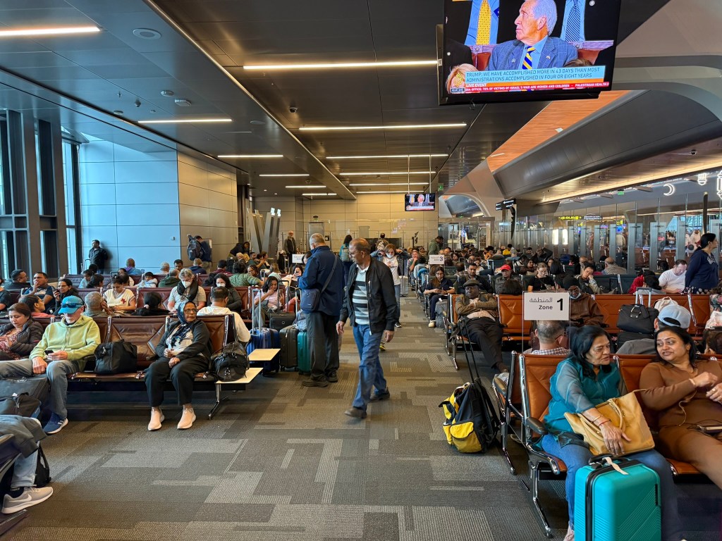 We headed to our gate a bit early as there was an additional security screening. We got through that fairly quickly and waited in our Zone 1 pen for boarding.